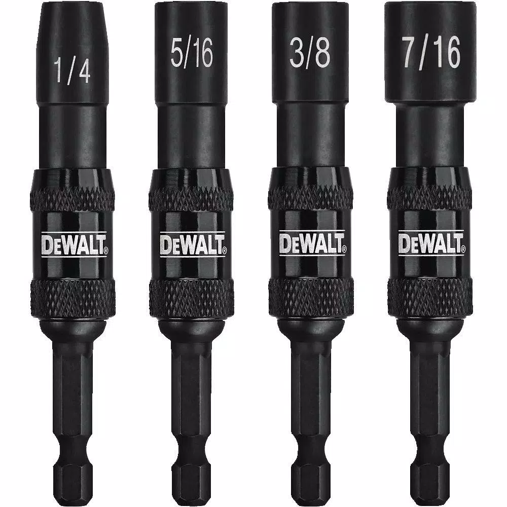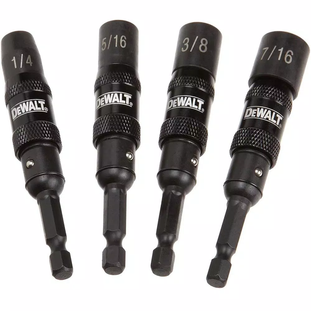 Never worry about stripping hard-to-reach nuts and bolts with this 4-Piece Magnetic Pivoting Nut Driver Set from DEWALT. Use these pivoting extenders with an impact driver or impact wrench to fasten in tight spaces and let the industrial-strength magnets give you an extra hand.