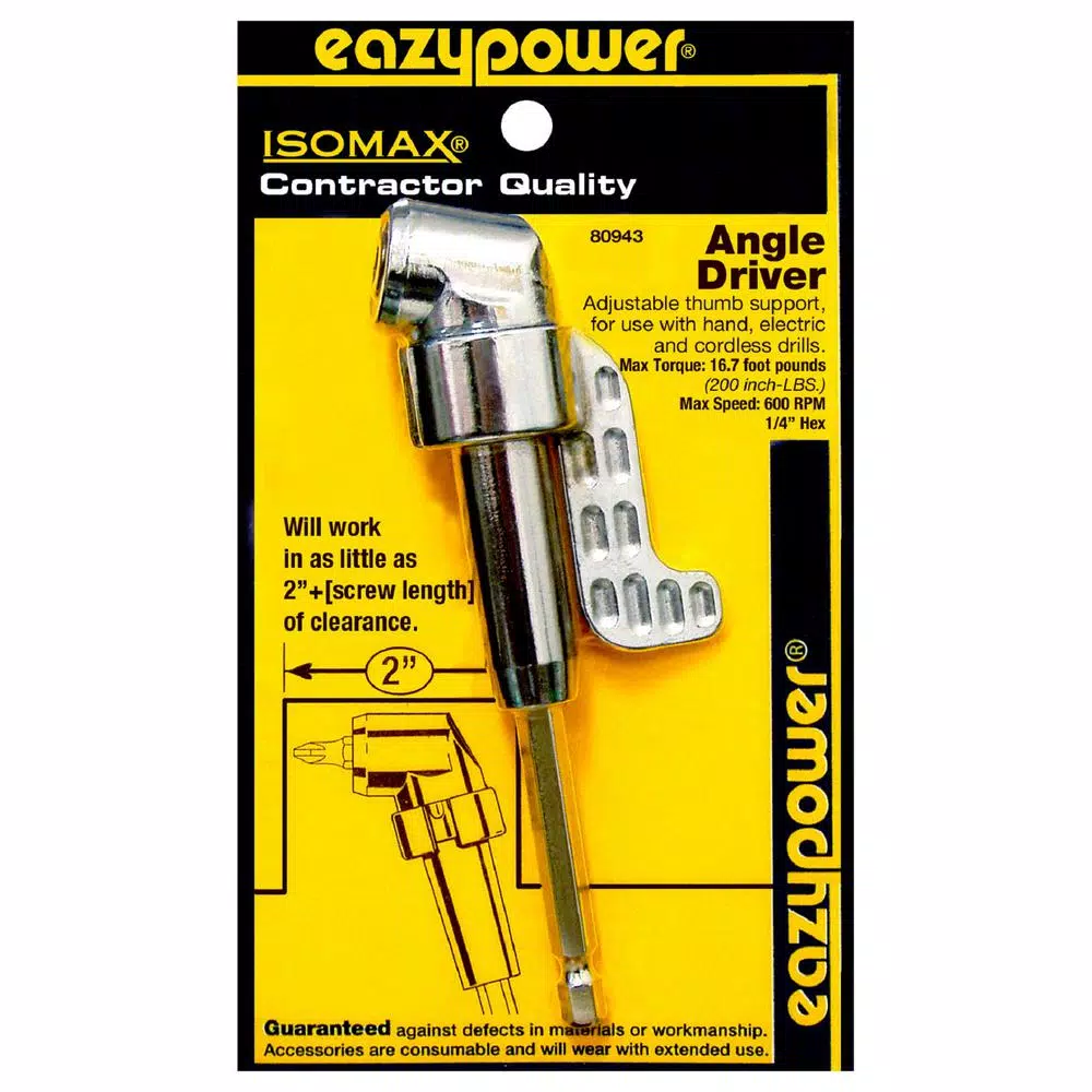 This right angle driver features a true 90° head and can exert maximum torque of 200 in./lbs. Thanks to the quick release function, it’s easy to change out bits and move between jobs more quickly while the adjustable support handle adds stability and versatility to this handy driver. The end of the handle also unscrews, so you can store a bit inside for added convenience.