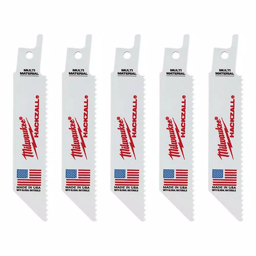 The Milwaukee 49-00-5410 is a 4 in Multi-Material M12 HACKZALL reciprocating saw Blade designed for cutting verious materials, and optimized for use with the M12 HACKZALL Reciprocating Saw. HACKZALL Blades deliver up to 35% more cuts per charge than leading reciprocating saw blades and are ideal for a variety of HVAC, electrical, plumbing and maintenance/repair applications. Milwaukee HACKZALL Blades combine an aggressive cutting angle, deep gullets and precision-ground tooth geometry for faster cutting. The short length of HACKZALL Blades makes it easier for users to cut in the confined spaces where the HACKZALL Reciprocating Saw excels and helps deliver accurate cuts with reduced bending and breaking. Milwaukee HACKZALL Blades feature a Matrix II bi-metal construction for longer life and greater tooth durability. The Milwaukee 49-00-5410 contains 5 Saw blades.