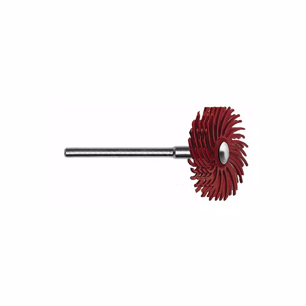 Dedeco SUNBURST RADIAL DISCS generate minimal dust and heat and eliminate the need for polishing compound. No matter what the material being worked, SUNBURST RADIAL DISCS are the absolute best for finishing and polishing hard-to-access areas without removing detail or causing flat spots. The sharp, clean, specially treated ceramic abrasive grain imbedded throughout their thin flexible bristles enable them to work faster and last-longer than rubber wheels, brushes, buffs and conventional sanders. Recommended operating speeds for most applications is 3,000 RPM to 18,000 RPM (5,000 RPM for woodworking). Lower speeds allow a softer touch, greater flexibility and more subtle results. Higher speeds provide more aggressive material removal. Using the tips of the bristles with light pressure maximizes disc life.