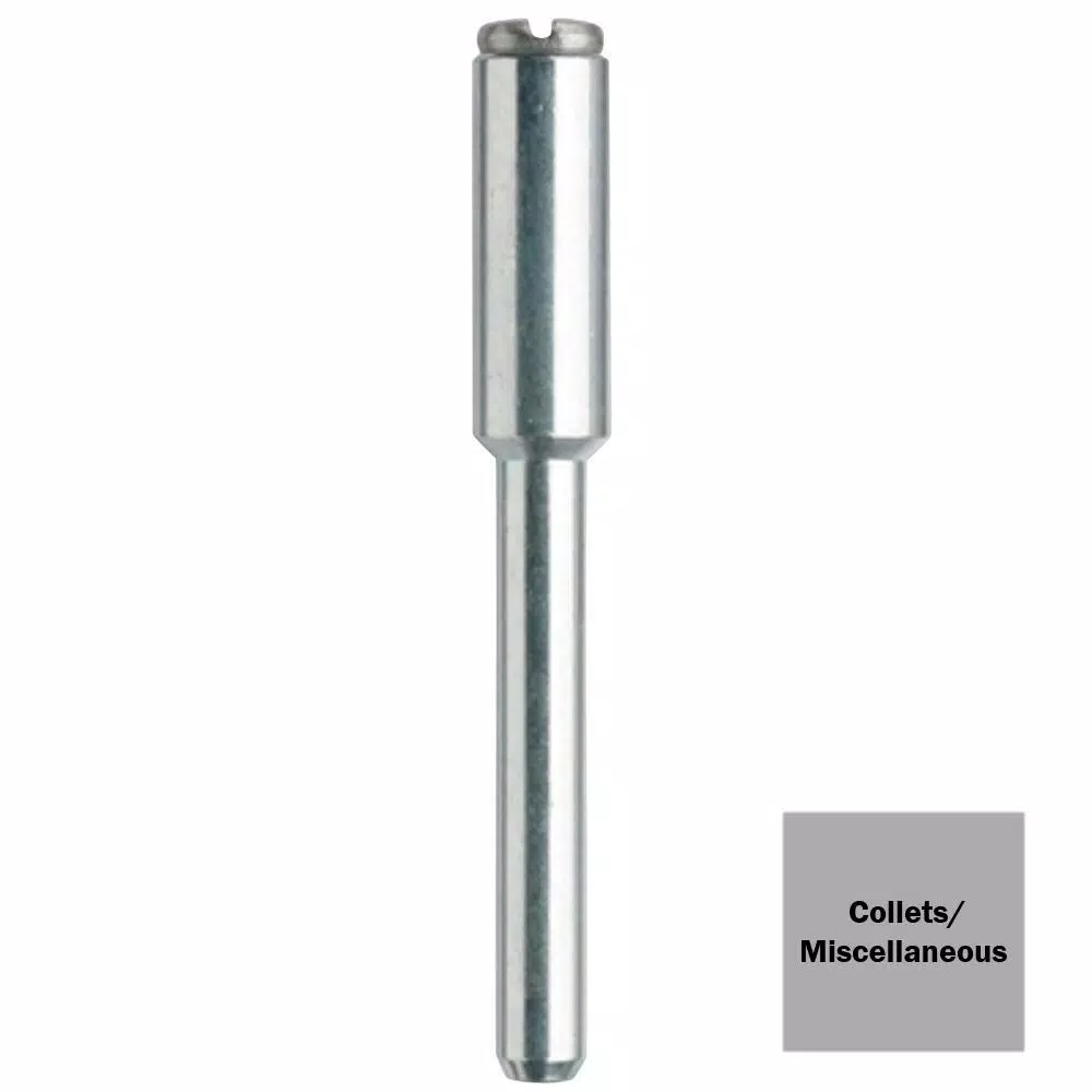 A shank with a screw-like head. Used primarily with Dremel polishing bits and accessories. For best results, insert the mandrel all the way into the tool and then back it out slightly before tightening down. This provides plenty of shank for the collect or chuck to hold onto. Simply remove the screw, line up a cut-off wheel or sanding band over the hole in the shank and replace and tighten the screw.