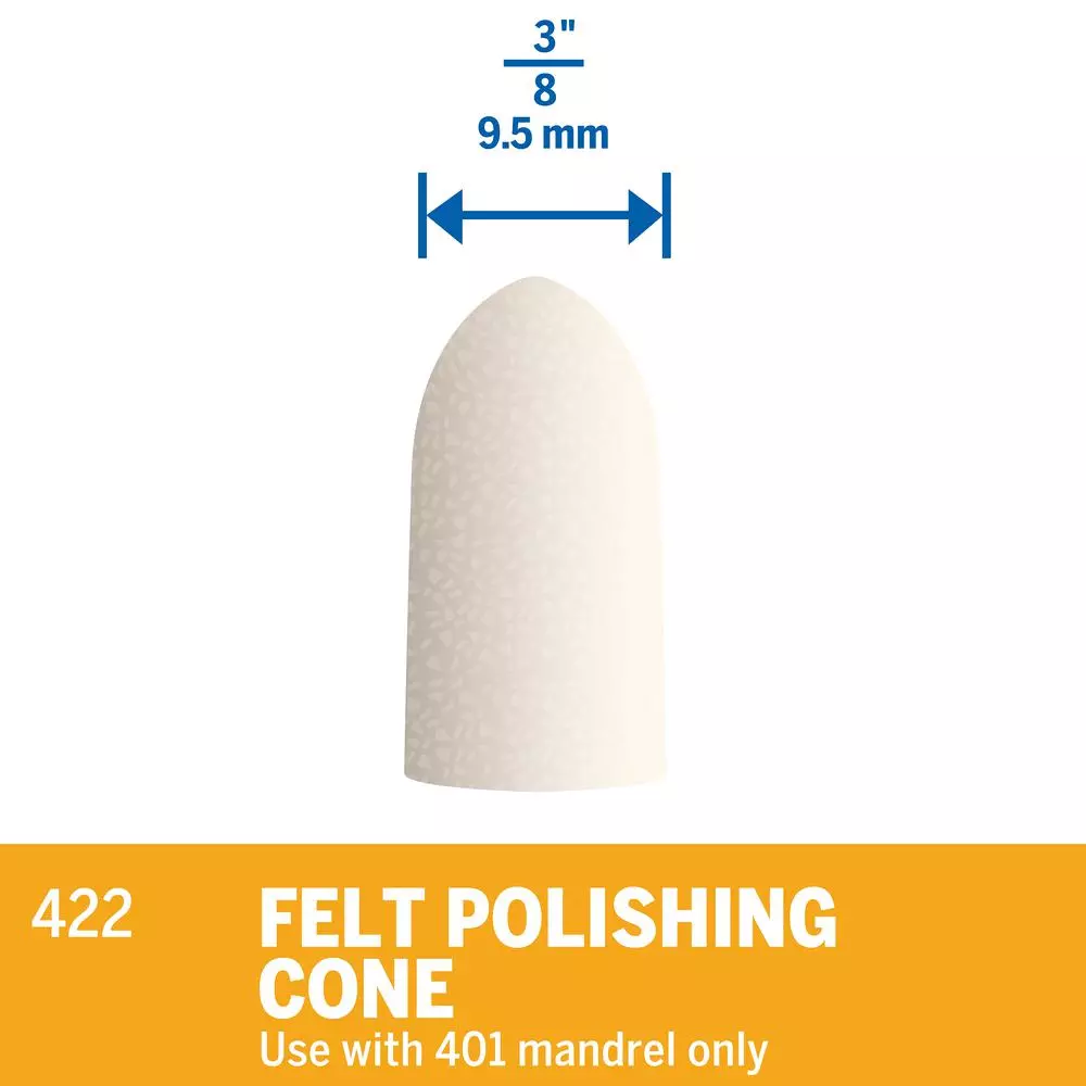 The 3/8 in. Felt Polishing Point is made to take a semi-rough finish and polish it to a smooth finish. Ideal for general polishing of most ferrous metals, stones, glass and ceramics. Can be used with 421 polishing compound to produce a smooth finish.