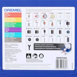 An EZ Lock mandrel, EZ Lock cut-off wheels and the handy collet fan are part of this 130-Piece kit filled with genuine Dremel accessories. Offering reusable storage bins and lift-out trays for easy organization of the included bits, this kit is ready for cutting, grinding, polishing, sanding, cleaning and more. The kit also includes sanding bands, sandpaper discs, polishing compound, felt polishing wheels, aluminum oxide grinding stones, silicon carbide grinding stone, mandrels, wire brush, wrench and a reusable carrying case with clear lid.