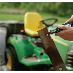 - Lawn mower guide provides an optimal sharpening angle for all lawn mower blades