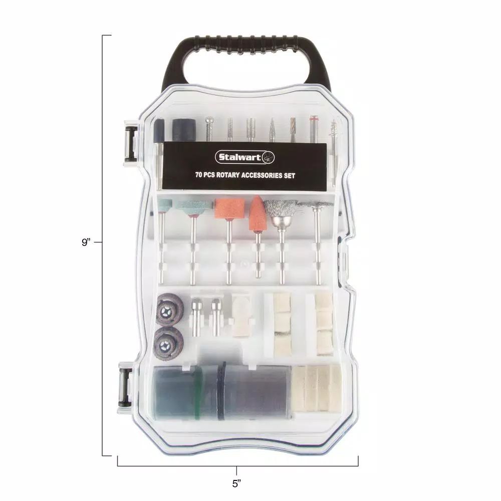 Tackle all of those must complete projects with this rotary tool set by Stalwart. This kit will fit all standard rotary tools. Itβs perfect for sanding, grinding, polishing, buffing, sharpening, cleaning and carving.