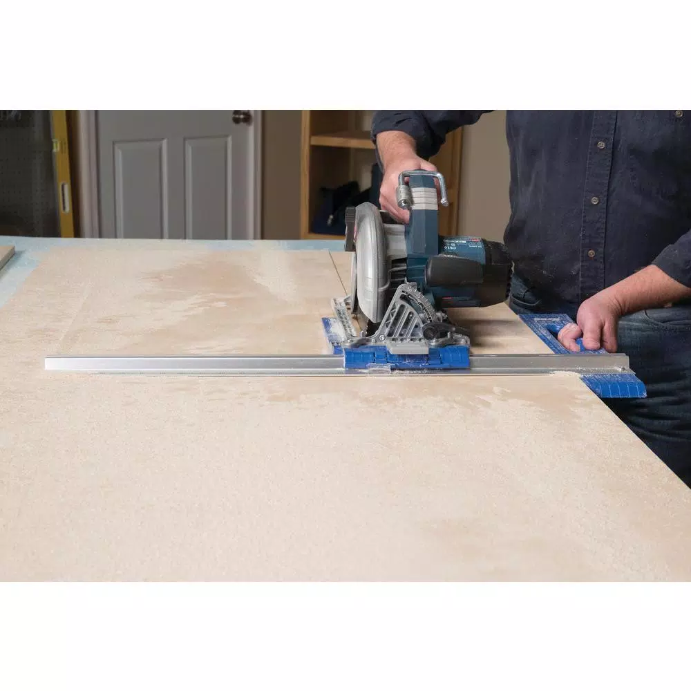 Break down plywood with ease by turning your circular saw into an edge-guided and track-guided cutting solution. Plus, switching between the Accu-Cut and Rip-Cut is a breeze with the Universal Saw Sled -you never need to worry about setup changes. Set your projects up for success by making straight, accurate, splinter-free cuts with the Accu-Cut Circular Saw Track Guide and Rip-Cut. The Accu-Cut guides your circular saw along an aluminum track that holds the saw steady and keeps your cuts straight. The track guide is designed for simplicity: just mount your saw to the Universal Sled, align the Accu-Cut track to the cut line, track to the cut line, and make the high-quality cuts you need. The Rip-Cut uses a long edge guide that follows the straight edge of the sheet you are cutting. You simply lock the saw in at the measurement you want and make your cut.