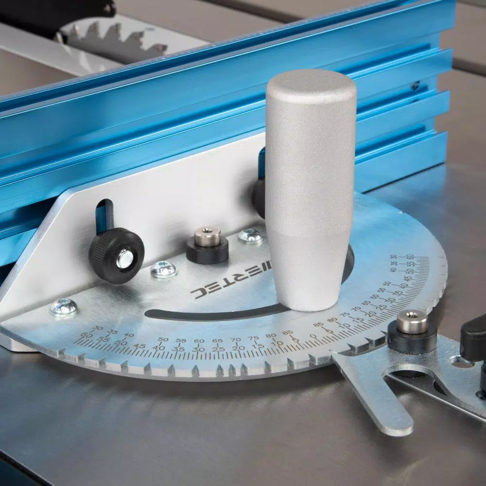 Introducing the Universal Table Saw Miter Gauge by POWERTEC. This compact, yet premium miter gauge is designed to provide you with a highly accurate and durable solution to your table saw angled cuts and cross cutting needs. It features positive stops at all common angles and flaunts a total of 27 lockable stops for high precision incremental control. UNIVERSAL COMPATIBILITY: It is designed to work with most standard table saws or machines with a 3/8 in. x 3/4 in. t-slot. This includes the POWERTEC line of power saws, along with other popular brands such as: Craftsman Delta Dewalt Grizzly Kreg and more. SUPERIOR ACCURACY: The positive stops are ideal for an assortment of woodworking projects – as they feature the angles more commonly used. Offering 27 lockable stops in 5 increments over an entire 180° range, this allows for plus or minus 60-range miter cuts. PLUS there are even more angled options that are clearly indexed (though not lockable) and easy to follow. HIGH QUALITY BUILD: Our miter gauge possesses a laser-cut aluminum construction with a light-weight design to ensure exceptional performance, accuracy and long-term durability. The large gauge handle bears an EZ-grip design for strength and comfort. The protractor head is bottom-coated with nylon for easy glide-ability. Additionally, the removable retainer plate prevents the miter bar from accidentally lifting or flipping when feeding your stock through.