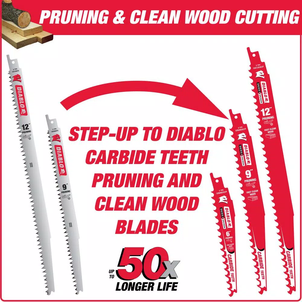 The Diablo Fleam Ground-Pruning Reciprocating Saw Blade features a bi-directional tooth design for fast and smooth cutting in both directions. These blades were made with precision Fleam ground teeth to cut wood with ease. The unique plunge-tip design gives you faster and easier plunging.
