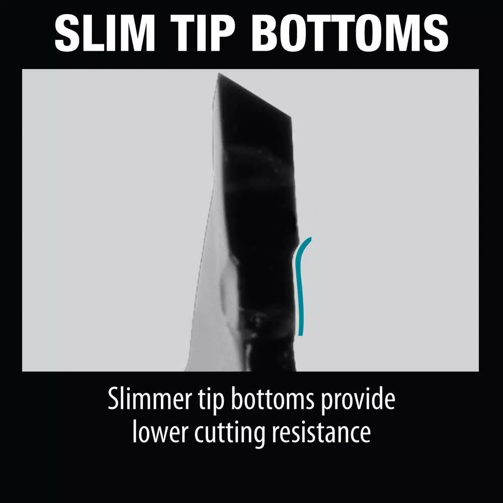 - Reduced swing width allow for smoother material removal with less cutting resistance