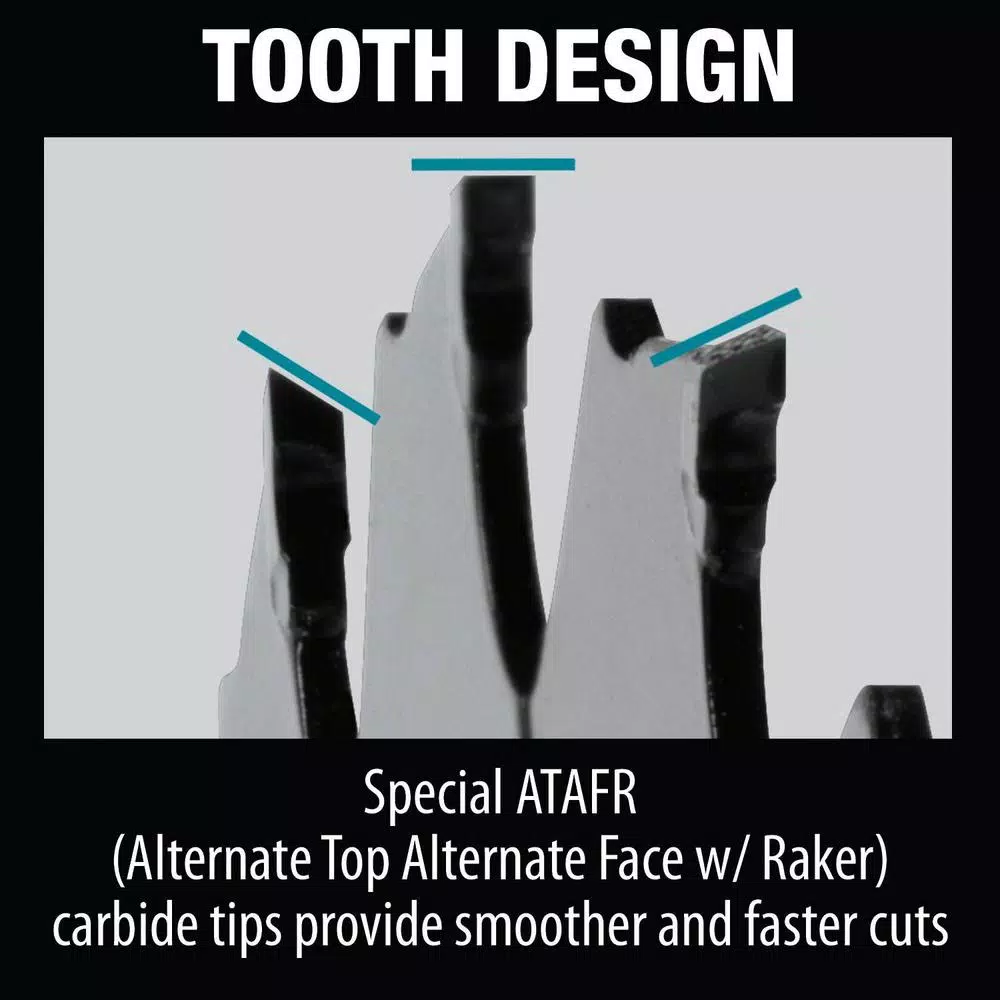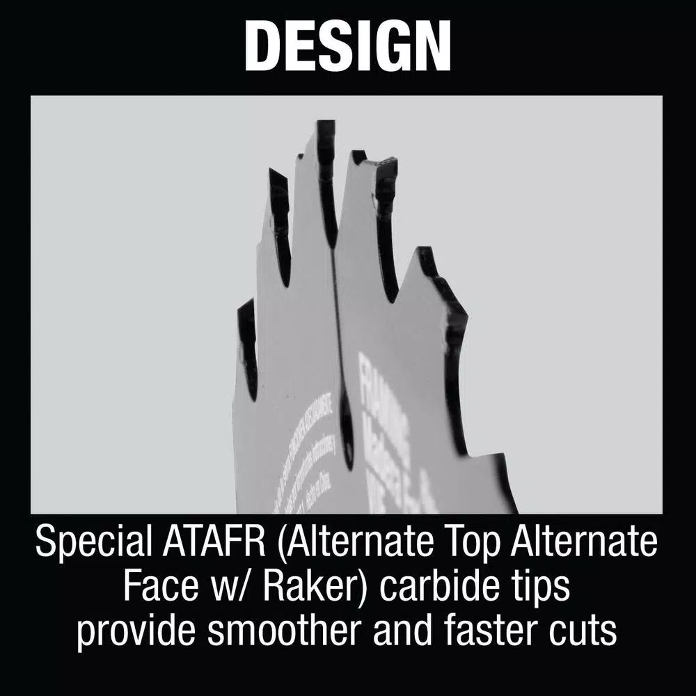 - Special ATAFR (Alternate Top Alternate Face w/Raker) carbide tips provide smoother and faster cuts