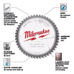 The Milwaukee 6-1/2 in. 48T Metal Cutting Circular Saw Blades are specifically designed to exceed contractor’s expectations for blade life, cut quality and speed in the most demanding metal cutting applications – without a lubricant. The metal cutting circular saw blades feature hand-tensioned hardened alloy steel bodies. This extends the user’s blade life and delivers them the highest quality cuts available. The blades feature Carbide-Tipped Teeth with Alternate Top Bevel grind enabling users to shear through metal delivering you burr-free, cool-to-touch cuts.