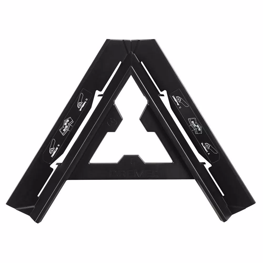 The Crown Molding Guide is the portable, compact solution for cutting standard 52/38 crown molding using your Dremel Saw-Max tool. Make compound miter cuts up to 9/16 in. thick, accurately and easily, using the Saw-Max SM600 flush cut wheel. Today, when cutting crown molding, a user often has to use a compound miter saw, which can be large and expensive. Often DIYers do not own these saws and can feel intimidated by their size. The Crown Molding Guide allows users to make these complicated cuts easily and accurately, without needing a large and expensive tool.