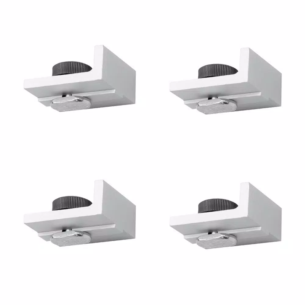 Introducing the Universal Stop Kit for the T-Track System by POWERTEC. These tool-less stops are designed to provide you with a quick, precise and secure holding option for a wide assortment of woodworking applications. This kit includes t-track stops for each direction. You can utilize the short stops on one end of your workpiece to hold it fixture firmly in place, or the inline stops to secure and sandwich your stock for proper alignment no matter the angle. FEATURES: – Includes round, low profile knobs for optimal and secure tightening. They offer exceptional clearance that allow you to work with thin stock (as thin as ¾ in.), and/or can help reduce interference of tools when hand planing, belt sanding or scraping dried glue. – Made with extruded aluminum for high quality strength and long term durability. Also possesses a premium anodized silver finish for corrosion resistance. – The short stops (running parallel to the stop face) have sharp edges on both ends, while the edges have been removed for the inline stops (running perpendicular to the stop face). COMMONLY USED APPLICATIONS: CNC Machining, Lite Board Clamping, Hand Planing and Sanding, T-Track Jigs and Fixture Configurations T-TRACK SYSTEM CONTAINS: (2) Parallel Stop [1-5/8 in. x 1-1/2 in.], (2) Perpendicular Stops [1-5/8 in. x 1-1/2 in.] (4) Low Profile (Black) Round Thru Knobs [3/4 in. Dia x 7/16 in. H] (4) T-Bolts [5/16-18 in. x 3/4 in. L].