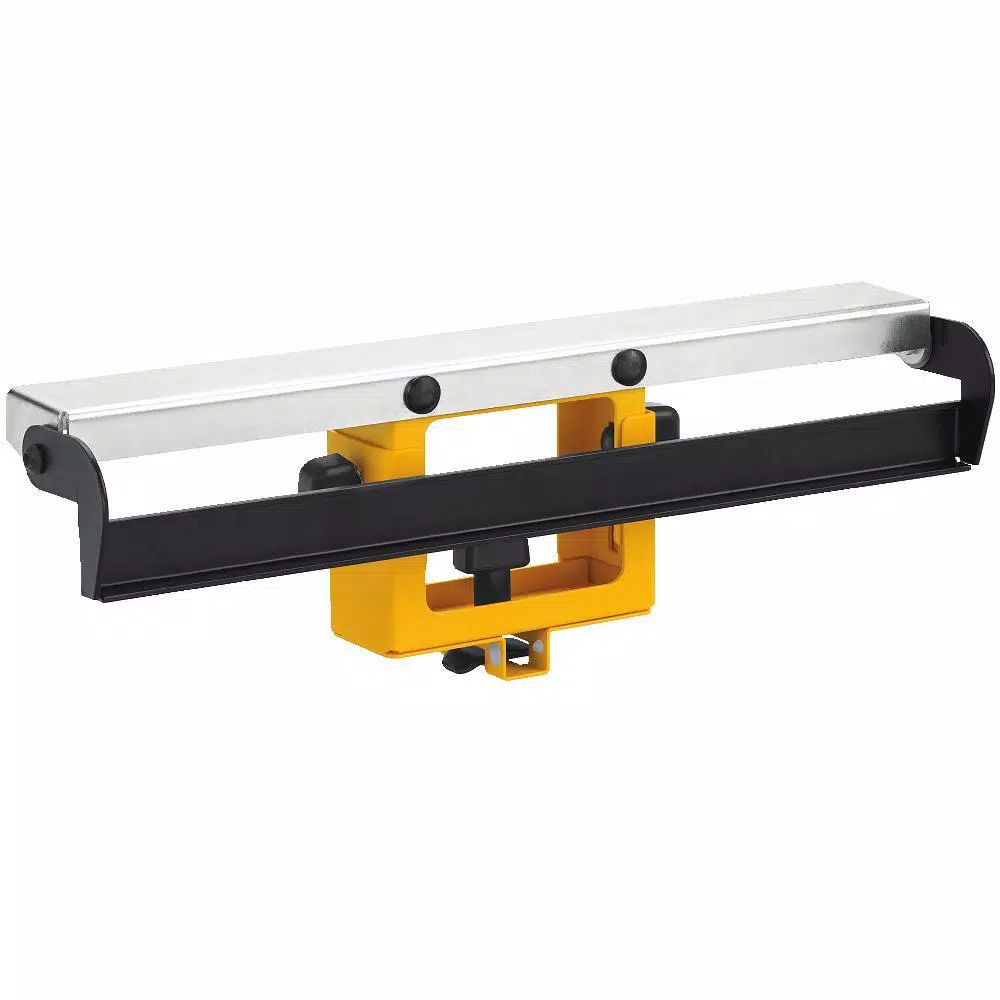 The DEWALT Wide Miter Saw Stand Material Support and Stop holds wide material in place for cutting. It also keeps your stock from falling off the front or back. The support is durable enough to withstand tough working conditions yet constructed of lightweight aluminum. It has a flip-up stop for fast conversion to a cut stop and is adjustable in height to fit your miter saw table height.