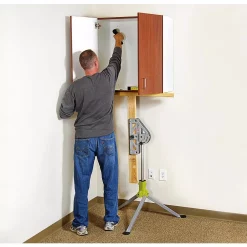 Anyone who uses a table saw or miter saw frequently will find the JawStand indispensible. This tool improves the concept of the traditional roller stand and adds extra features to create a work support stand, unmatched for the price. The low-friction slides on the top of the stand allow work to pass over it in a straight path. Traditional rollers tend to pull the work off line, away from a fence or guide, leading to inaccurate cuts. The head bevels a full 90°. Built in to the tilting head is a work clamp, capable of holding material up to 1 in. wide. The JawStand does a great job at holding a door in place for hanging, or using a 2 x 4 brace to support crown molding while hanging it. The JawStand is more than just a stand it is an extra hand.