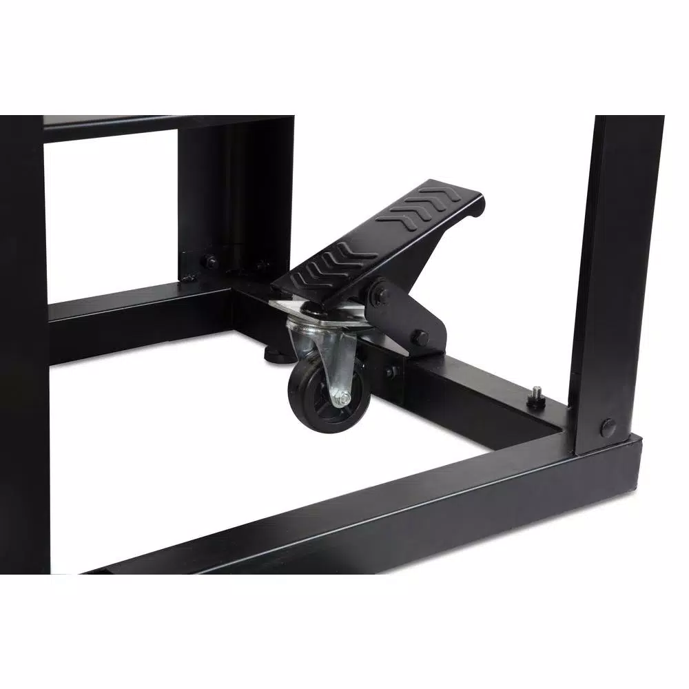 - Retractable swivel caster takes the stand from stationary to mobile in a matter of seconds